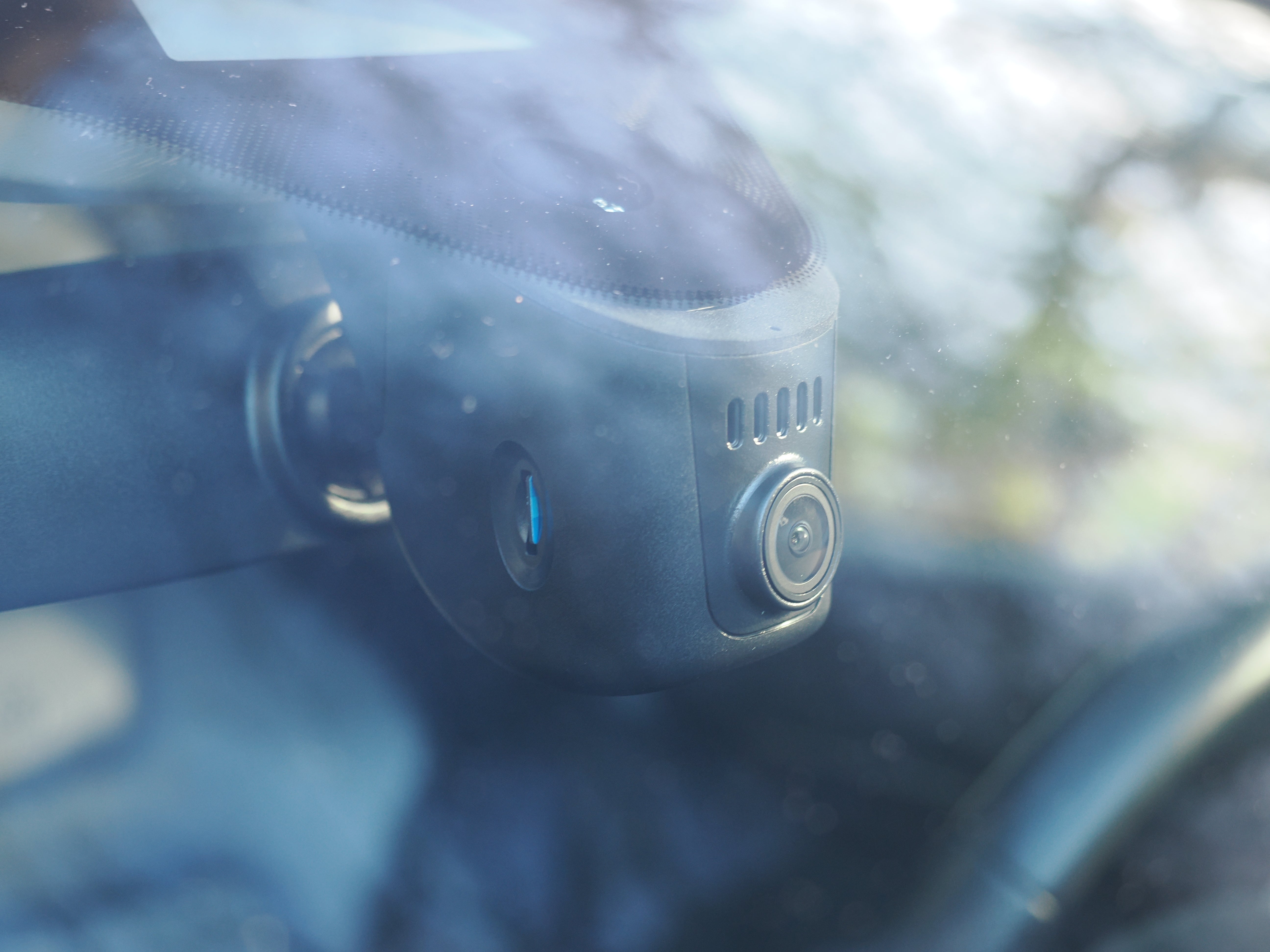 De dashcam is volledig geïntegreerd in de spiegelkap van de auto. Wat een fabrieksoriginele uitstraling geeft.